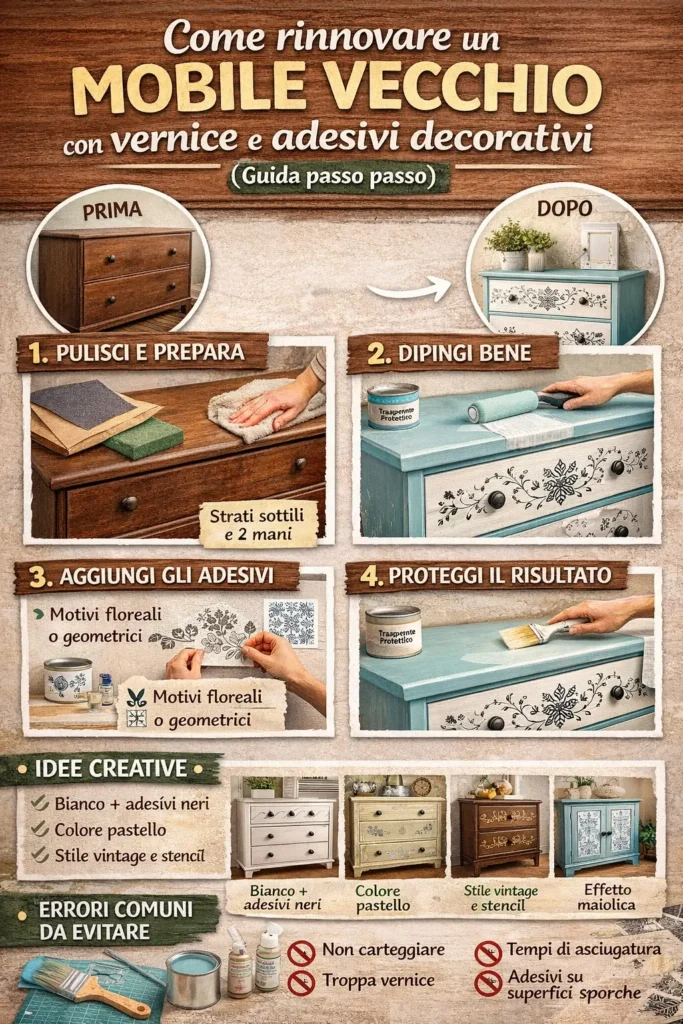 Come rinnovare un mobile vecchio con vernice e adesivi decorativi
